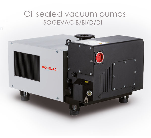 - The innovative Leybold SOGEVAC B single-stage oil sealed rotary vane pumps are ideal for modern industrial applications distinguished by low noise levels, high pumping speeds and high reliability. SOGEVAC B pumps have a pumping capacity range from 10 to 750 m3/h @ 50 Hz with an ultimate pressure of ≤ 8 X 10-2 mbar. The rotor, having three slots in which the vanes slide, is eccentrically installed in a pump cylinder (stator). The vanes separate the interior space into three chambers. The volume of these chambers varies with the rotation of the rotor. The gas sucked into the inlet chamber is compressed and then pushed out through the exhaust valve. The oil injected in the inlet chamber guarantees the air-tightness, lubrication and cooling of the pump. It is dragged off by the compressed gases and roughly separated by gravity when entering in the oil sump. A fine separation is then operated in the exhaust filter, with an oil loss of below 1 ppm which is a benchmark in the industry. SOGEVAC B pumps are equipped with an anti-suck back valve at the inlet flange avoids oil coming back into the inlet line when the pump is stopped and a gas ballast for pumping condensable vapors.