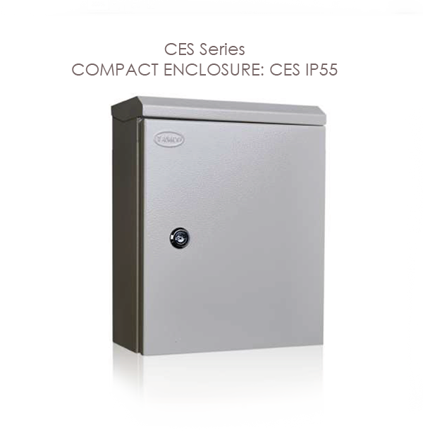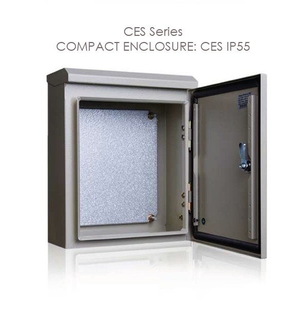 CES IP55. This compact enclosure comes with a canopy that provides extra prevention from the ingress of water spray. This series is suitable for outdoor purposes. Available in 14 standard sizes.