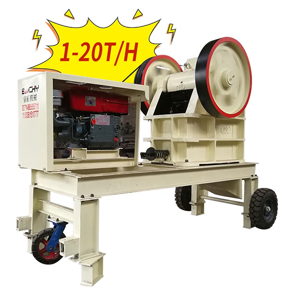 This small size PE series jaw crusher max. feeding size is 130-210mm, output size is 10-60mm, capacity is 1-20 tph. Mining crusher crushing materials including granite, basalt, limestone, river stone, sandstone, shale, iron ore, copper ore, building construction, construction wastes etc.