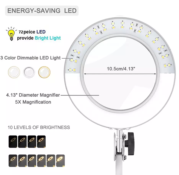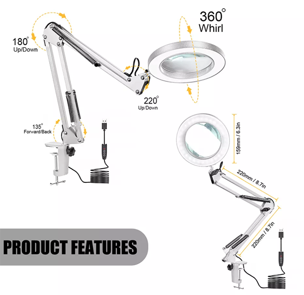- Type: Magnifying Lamp, 5X Magnifying Glass / Feature: manicure, cosmetic, Protect Eyes Plugs Type: USB