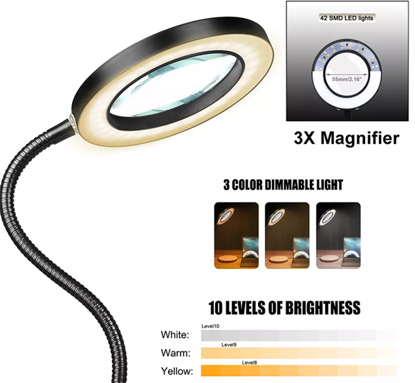 Study Lamp with 3X Magnifying Glass 42 SMD LED Light