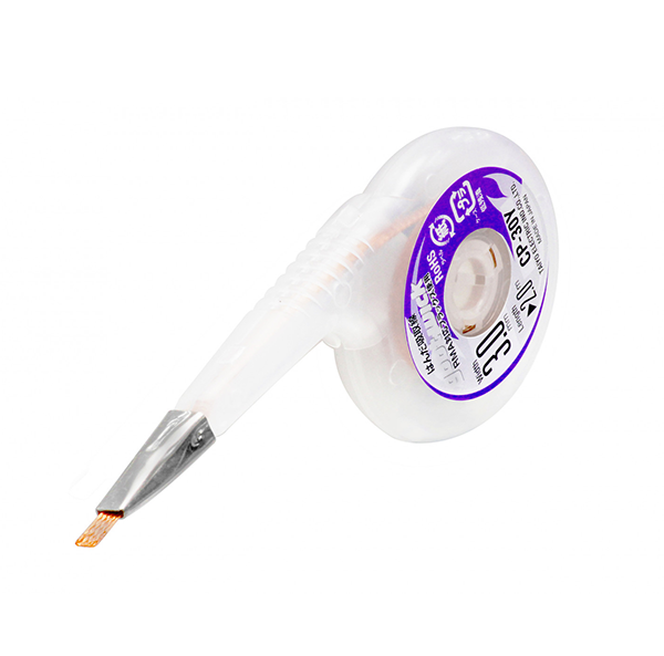 Our thin and soft desoldering wire’s flat braid has efficient thermal transmission. Removes solder faster with better heat response than previous wicks. Recommended for lead-free solder with high heating load.