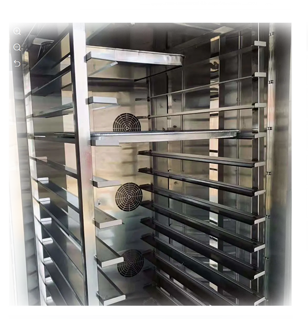 - Stainless steel exterior and interior, easy cleaning. Cooking and roast evenly, energy-efficient, multifunction. Easy operation and labor saving, the cart is easy to move. With burner from Japan, energy-efficient and long-lasting performance. Some parts of Control system are imported elements from Germany and Japan. Available for bakery, restaurant or food factory and so on.