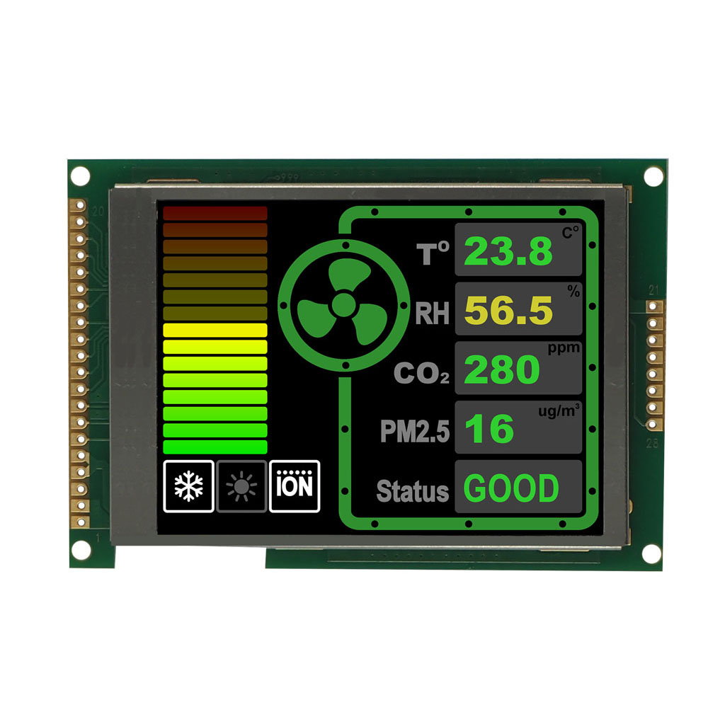 - Resolution : 320x240, Interface : MCU , Voltage : 5V, Temperature : -20°C ~ 70°C, Wide Viewing Angle : Yes , Outline : 71.5mm x 49.1mm x 7.7mm, Size : 2.4", Active Area : 48.96mm x 36.74mm