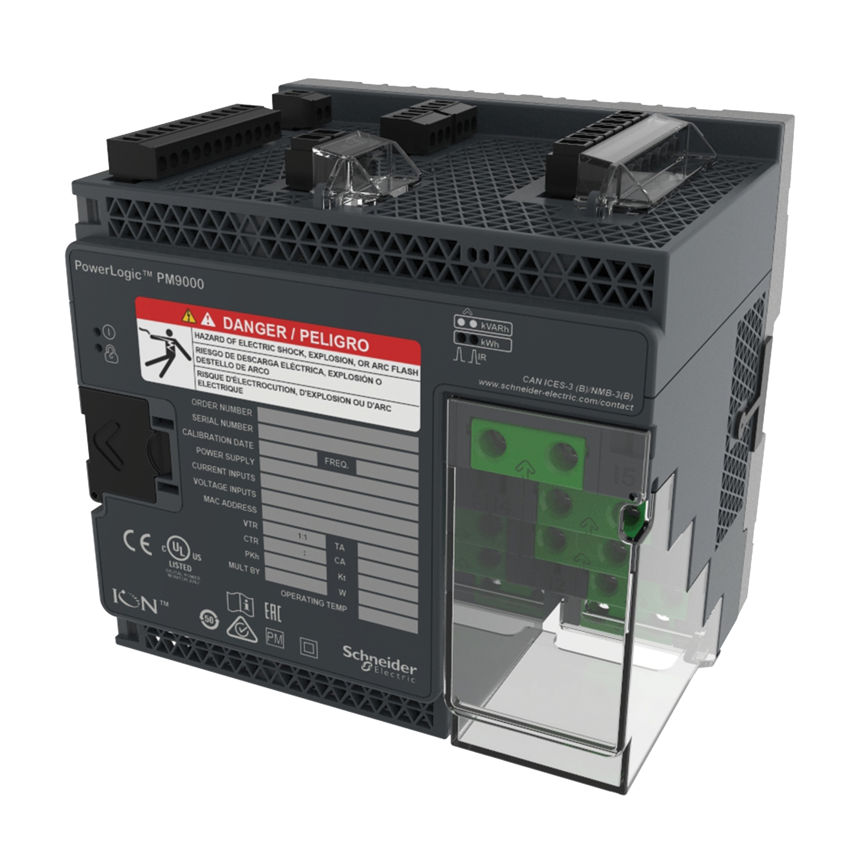 - PowerLogic™ ION9000 เครื่องวัดคุณภาพไฟฟ้าและรายได้ขั้นสูง ส่วนหนึ่งของ PowerLogic ด้วยความแม่นยำสองเท่าของมาตรฐานพลังงานที่มีอยู่ เครื่องมือวัดคุณภาพกำลังไฟฟ้า (PQI) ที่ผ่านการรับรองนี้จึงกำหนดมาตรฐานใหม่เพื่อความแม่นยำ แก้ไขปัญหาคุณภาพไฟฟ้าได้เร็วขึ้นด้วยเทคโนโลยีการติดตามสัญญาณรบกวนที่จดสิทธิบัตรแล้ว และให้โมดูลแยกเฉพาะที่ออกแบบมาเพื่อปรับให้เข้ากับความต้องการด้านพลังงานที่เปลี่ยนแปลงของคุณในปัจจุบันและในอนาคต