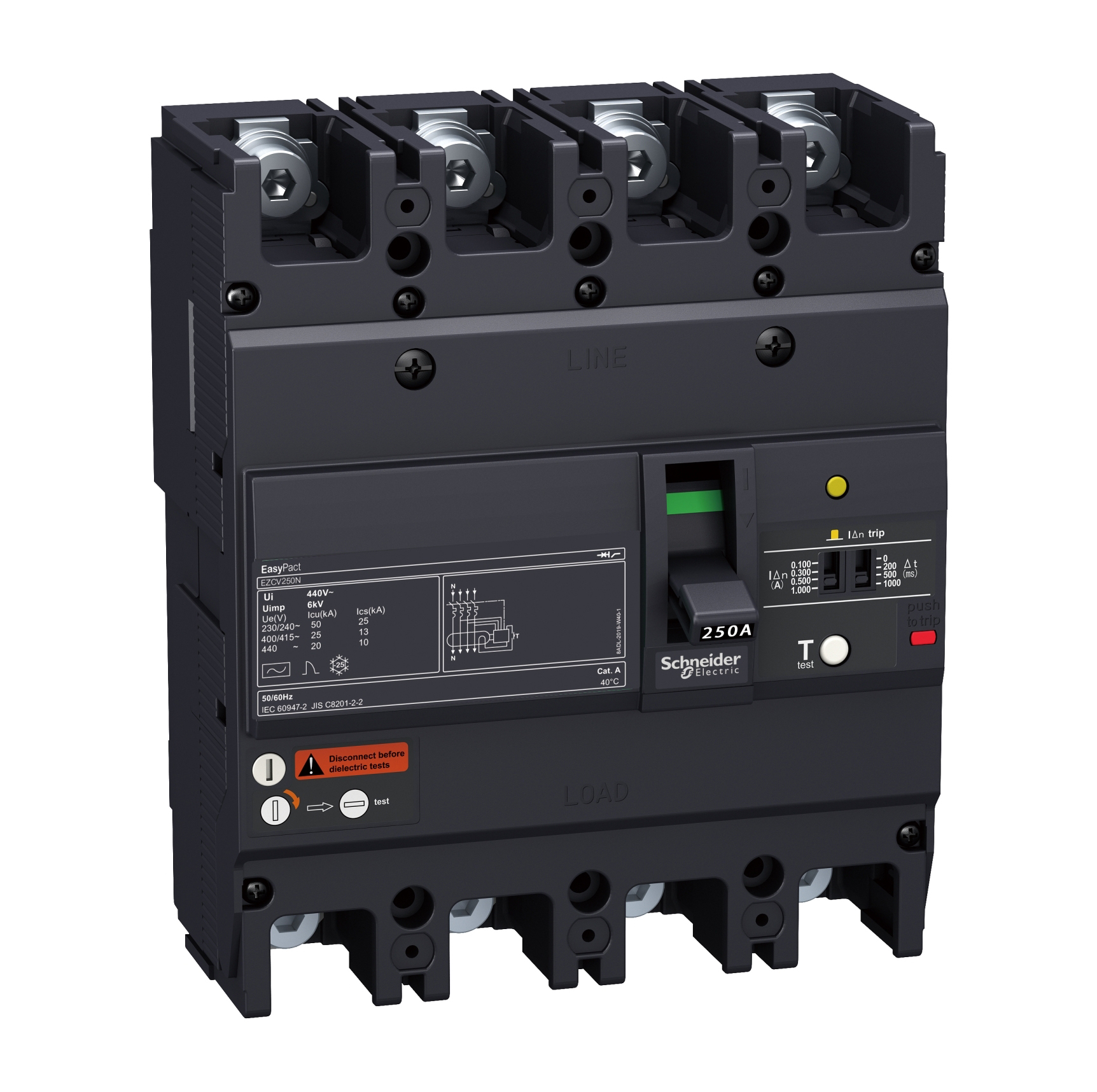 EZCV250H4250 circuit breaker, EasyPact EZCV250H, TMD, 250A, 4 poles 3d