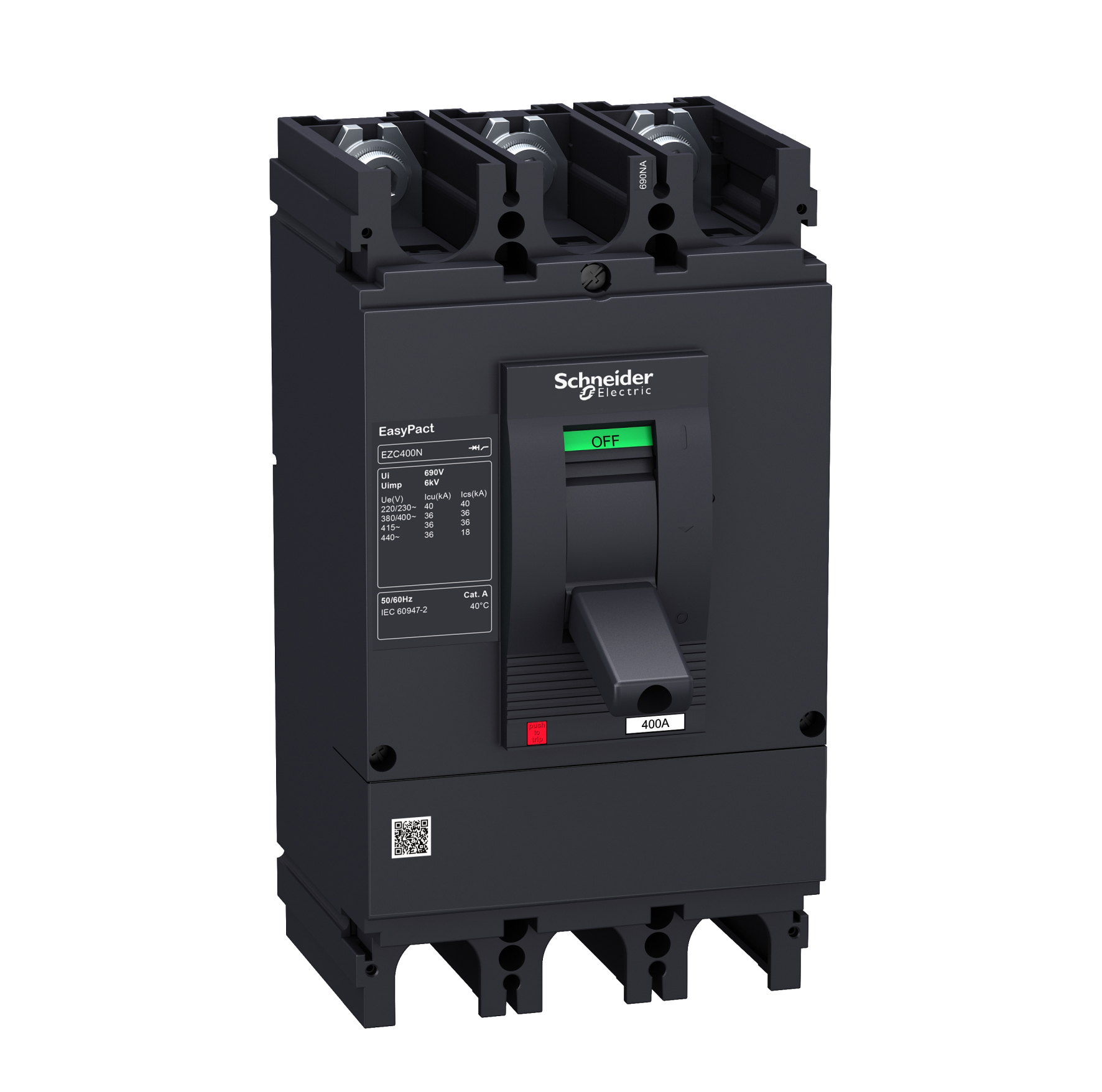 EZC400H4350N Circuit breaker, Easypact EZC400H, TMD, 350A, 4 poles 3d