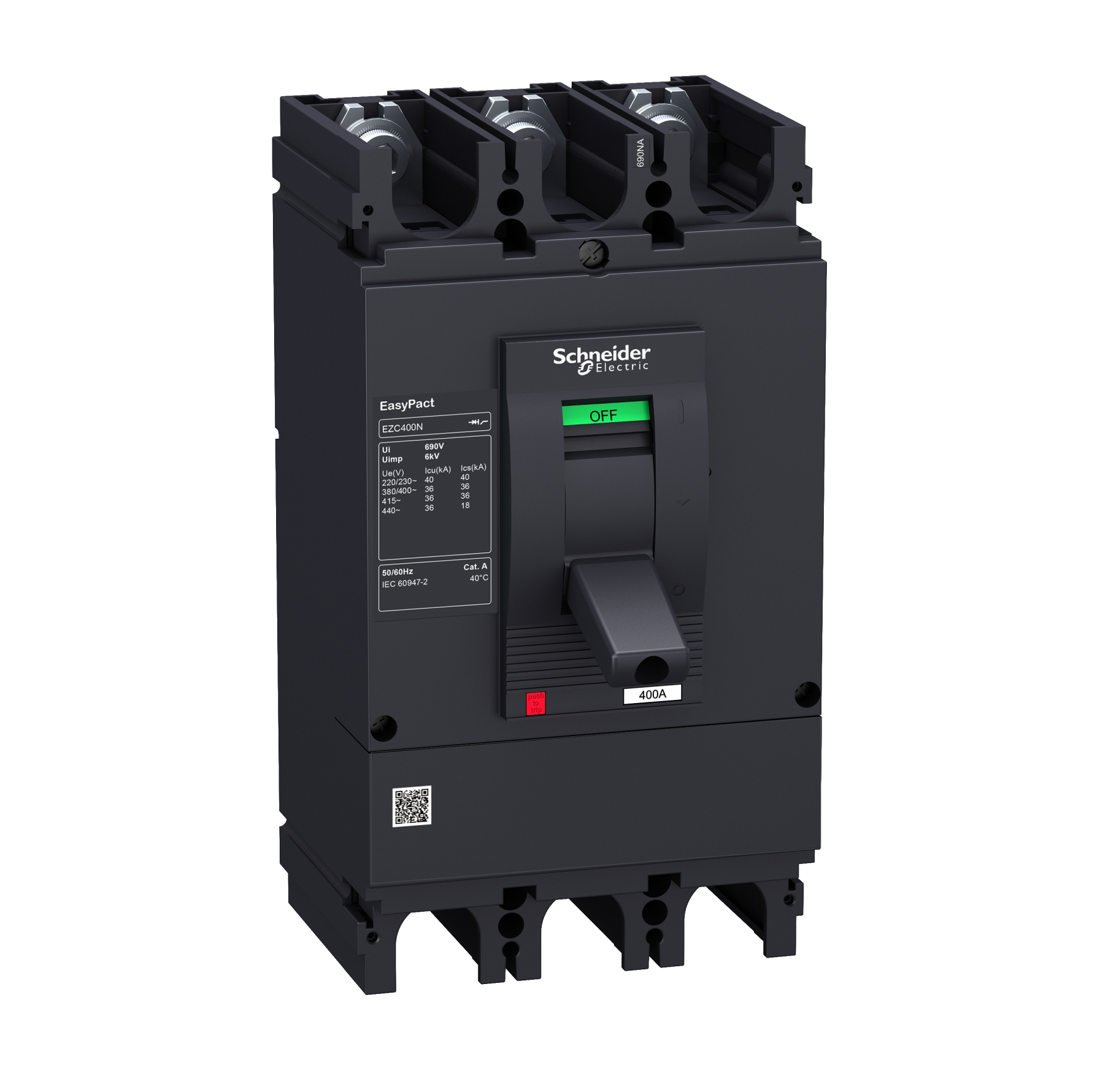 EZC400H4320N Circuit breaker, Easypact EZC400H, TMD, 320A, 4 poles 3d