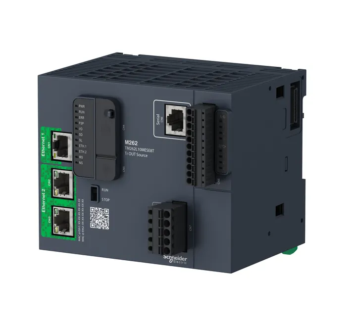 ลอจิกและตัวควบคุมการเคลื่อนไหวที่พร้อมใช้งาน IIoT สำหรับเครื่องจักรประสิทธิภาพ ส่วนหนึ่งของตัวควบคุม Modicon Modicon M262 ที่ฝังโปรโตคอล Industrial Internet of Things (IIoT) และการเข้ารหัสเพื่อมอบการเชื่อมต่อคลาวด์โดยตรงและบริการดิจิทัล
