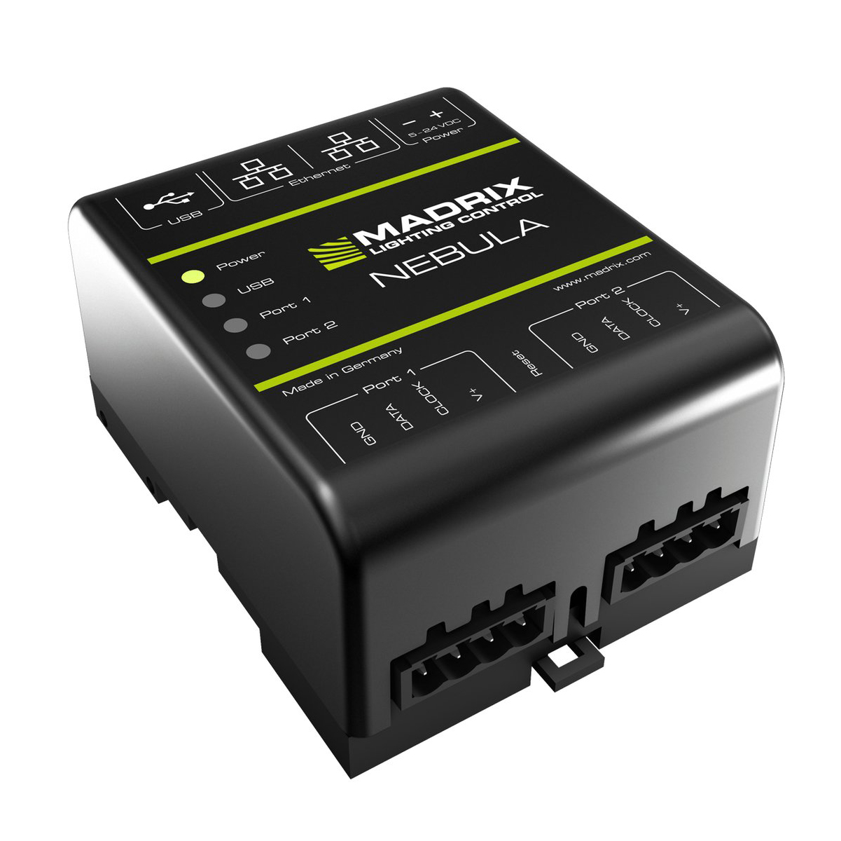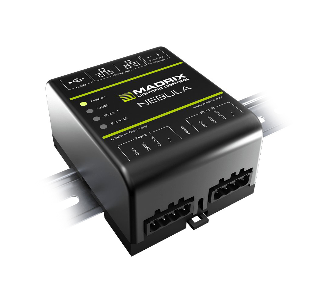 The MADRIX NEBULA directly connects to your LED pixels. This advanced SPI decoder receives control data over Ethernet network or USB and is built to provide excellent image quality. |