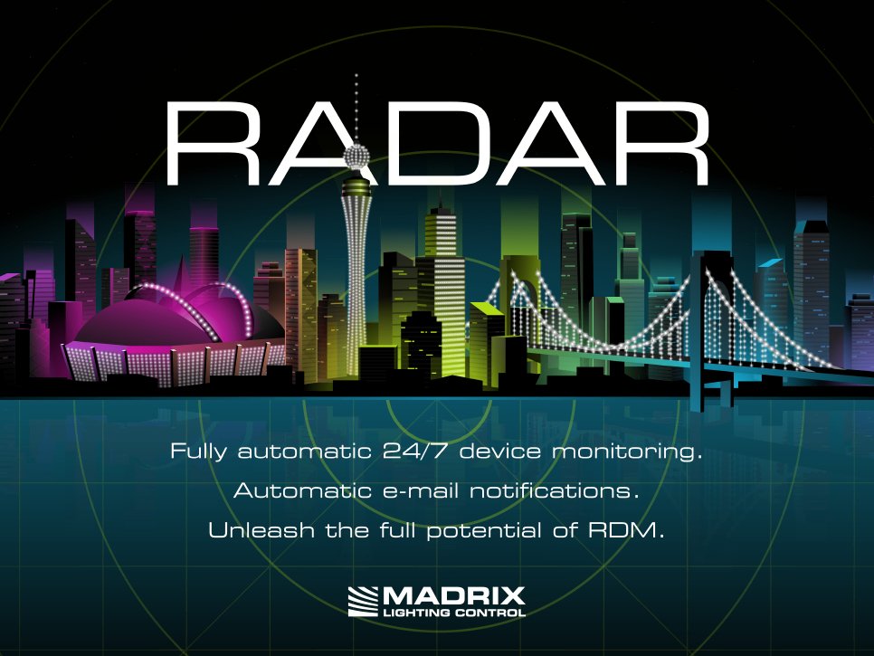 MADRIX RADAR SoftwareFully automatic 24/7 device monitoring. Automatic e-mail notifications. Unleash the full potential of RDM |