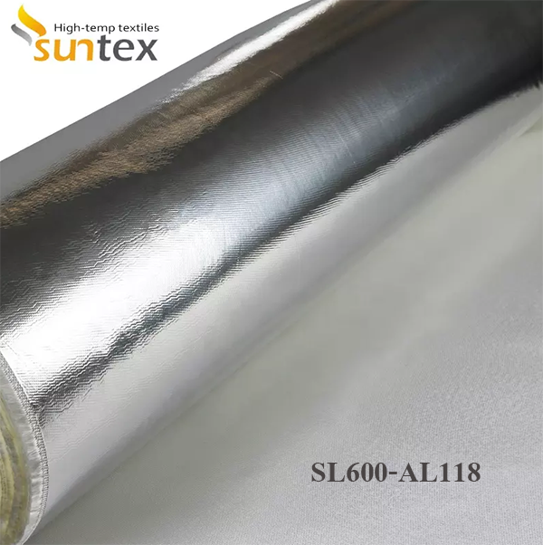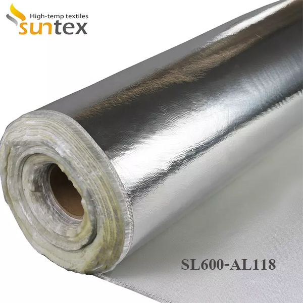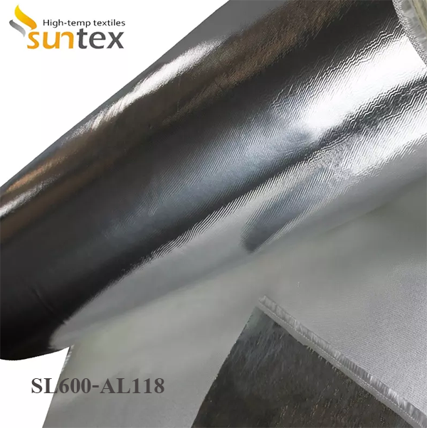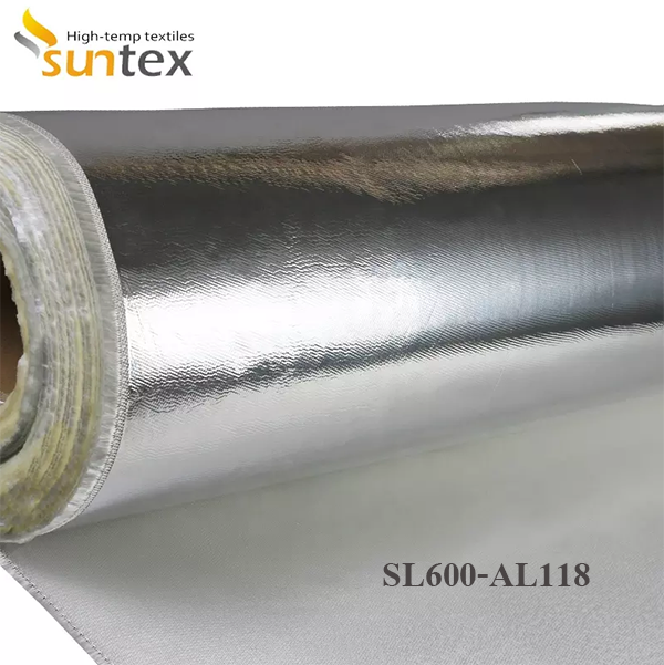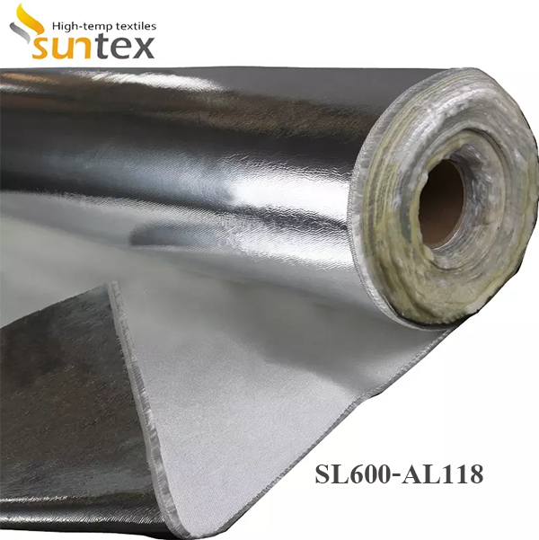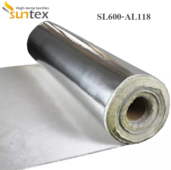SL600-AL118 is a medium-weight high silica fabric (SiO2--96%) laminated with an aluminum foil which provides a heat reflecting surface as well as other properties for the manufacturer of insulation pads, marine coveres,steam turbine covers and smoke curtains, blinds, cavity wall fire barriers. |