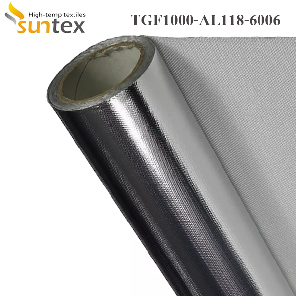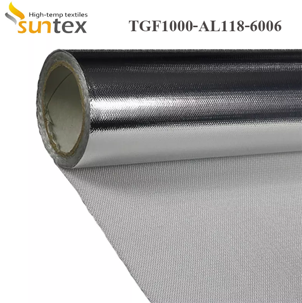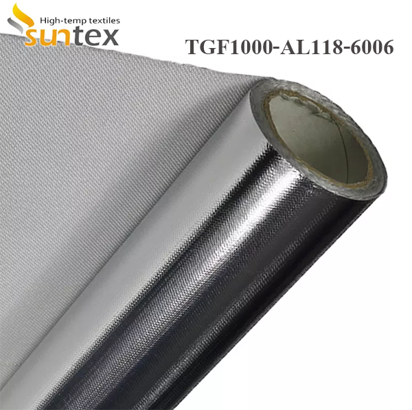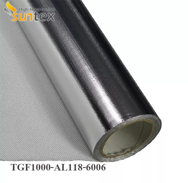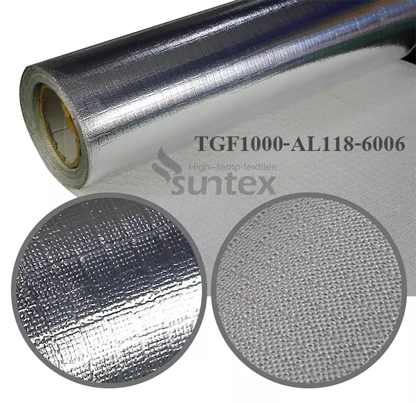 Aluminum foil/film laminated fiberglass fabricsThe combination of laminating an aluminum metallic/film heat shield to a layer of protective fiberglass insulation protects personnel or equipment by reflecting radiant heat. Suntex uses the high temperature adhesive to ensure the maximum working temperature up to 150 0C.
