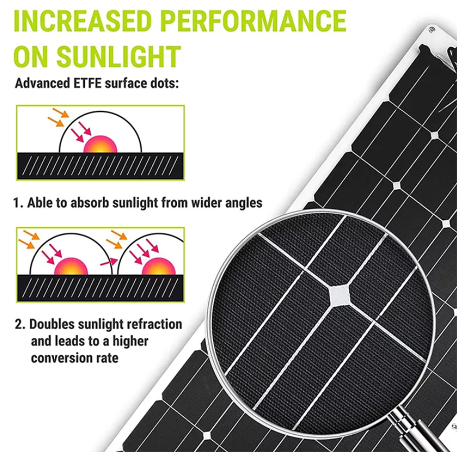 200W ETFE PV Solarpanel 12V 24V Sunpower RV Flexible Solar Panel Kit