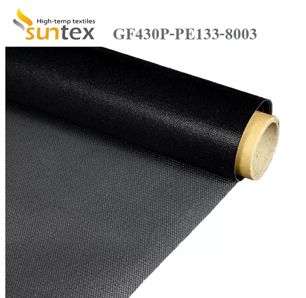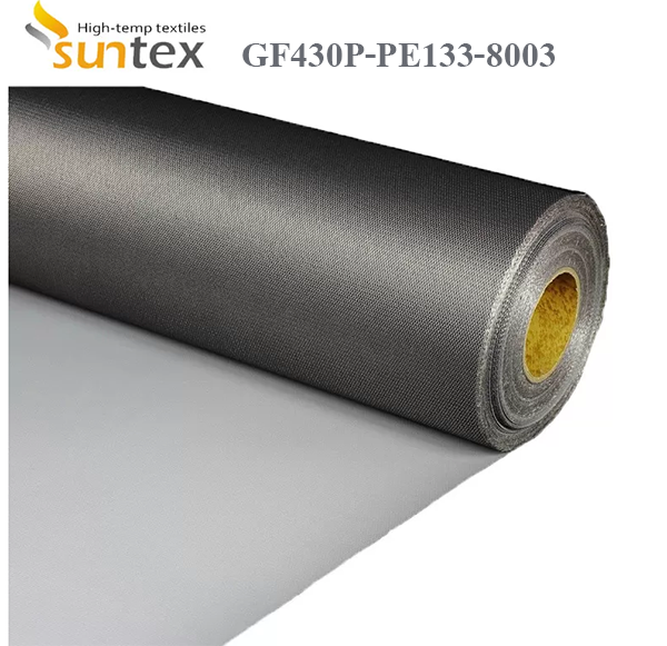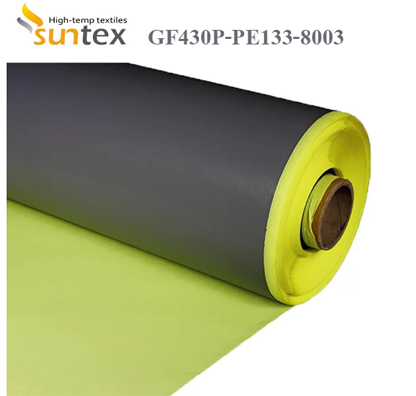 - GF430P-PE133-8003 is a medium weight woven fiberglass fabric coated with a specially formulated PTFE solution on one side. GF430P-PE133-8003 has excellent chemical resistance. And this fabric is soft and easy to sew and clean. It's designed for the manufacturer of removable insulation covers, dust lagging and other types of fire control systems.