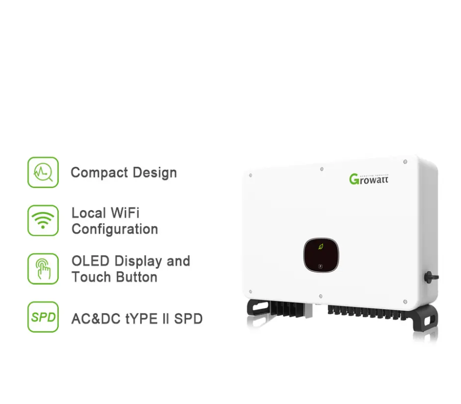 - Place of Origin: Jiangsu, China / Brand Name: Growatt / Model Number: MAC 30~60KTL3-X LV, MAC 30~60KTL3-X LV Input Voltage: 200V-1000V / Output Voltage: 230V/400V (340-440V)