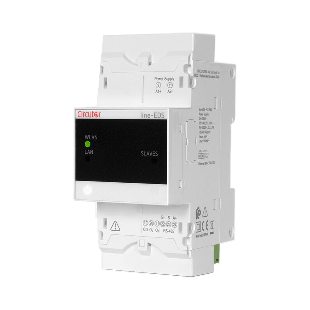 | The Line-EDS-PS is a gateway with PowerStudio embedded. This module, by itself, lets you set up a supervisory and telemanagement (SCADA) system. By using the expansion modules of the line range or any Modbus (TCP or RTU) device on the market, it is able to integrate any process signal that is to be measured. By programming the device with PowerStudio, you can incorporate any actuating logic for analogue or digital outputs, allowing you to create an automated management system that performs actions based on the input signals. The device can be connected via cabled (Ethernet) or wireless (Wi-Fi) networks. The data displays, screens and reports can be accessed via the PowerStudio client or via a web browser thanks to the integrated web server The Line-EDS-PS device has three models with different capabilities: |
