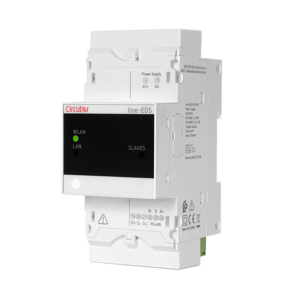 | The Line-EDS-PS is a gateway with PowerStudio embedded. This module, by itself, lets you set up a supervisory and telemanagement (SCADA) system. By using the expansion modules of the line range or any Modbus (TCP or RTU) device on the market, it is able to integrate any process signal that is to be measured. By programming the device with PowerStudio, you can incorporate any actuating logic for analogue or digital outputs, allowing you to create an automated management system that performs actions based on the input signals. The device can be connected via cabled (Ethernet) or wireless (Wi-Fi) networks. The data displays, screens and reports can be accessed via the PowerStudio client or via a web browser thanks to the integrated web server The Line-EDS-PS device has three models with different capabilities: |