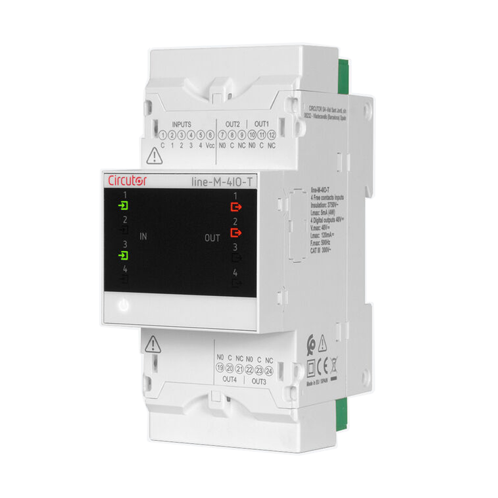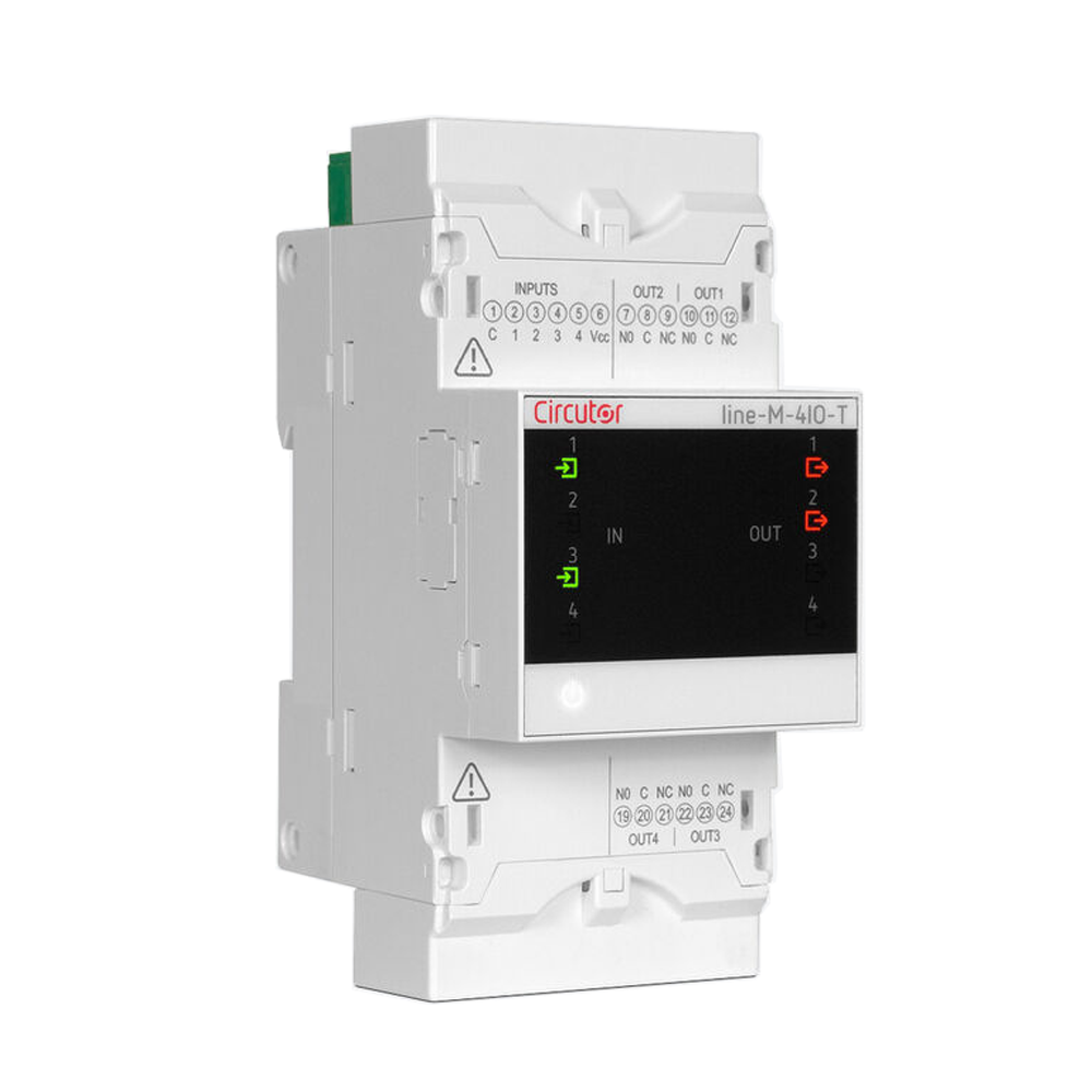 Module with 4 floating transistor inputs and outputs. The expansion modules of the Line range provide a simple way to extend the features of any version of line-EDS-Cloud, line-EDS-PS, or of the line-CVM-D32 network analyser. They allow adding digital outputs and inputs, analogue inputs and outputs or any combination thereof, to the devices. The modules are connected laterally and are detected automatically when the lateral connection is made, which greatly simplifies the installation and configuration of the modules. |