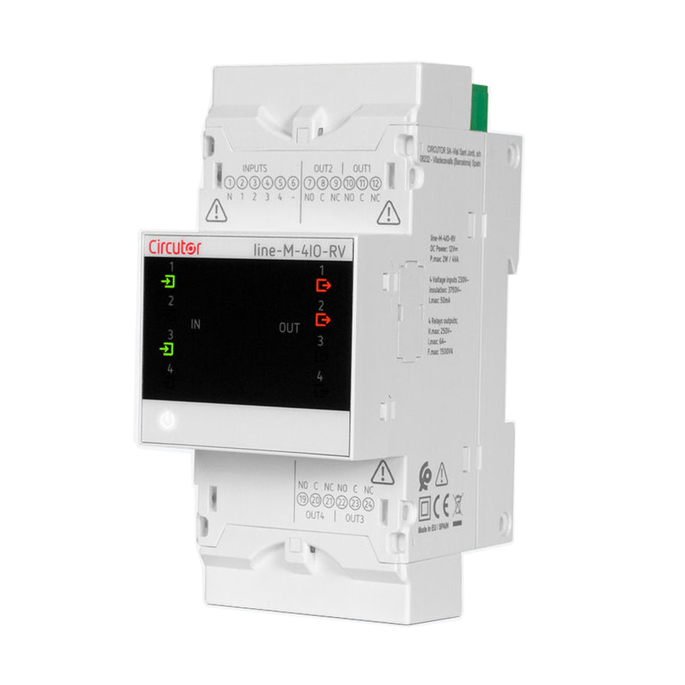 Module with 4 230V relay inputs and outputs. The expansion modules of the Line range provide a simple way to extend the features of any version of the line-ED-Cloud or line-EDS-PS, and of the line-CVM-D32 network analyser. They allow adding digital outputs and inputs, analogue inputs and outputs or any combination thereof, to the devices. The modules are connected laterally and are detected automatically when the lateral connection is made, which greatly simplifies the installation and configuration of the modules. |