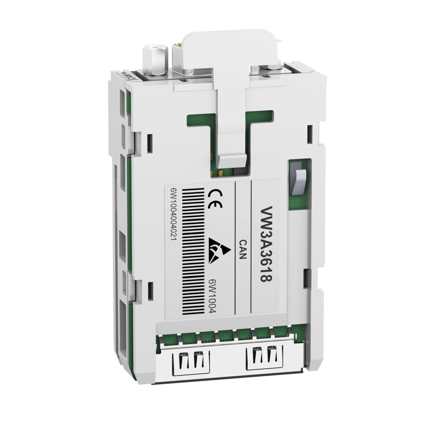 | This Schneider Electric Altivar CANopen communication module has 1 x 9-way female SUB-D connector. It offers 10/100Mbps speeds and an embedded HTTP server. This communication module enables integration of your drive in your CANopen D-Sub 9 process control network. It is simple to install and remove from Altivar drives thanks to its modular withdrawable design. It is compatible with Altivar 32, Altivar Machine ATV320, Altivar Process ATV600 (ATV630, ATV650)Altivar Process ATV900 (ATV930, ATV950), Lexium 32 and Altivar Machine ATV340. Removable module allows last minute decisions on drive communication protocol, facilitates installation project management. |