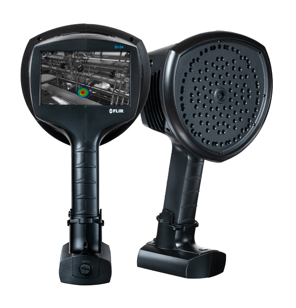 - The FLIR Si124-LD acoustic imaging camera can help you locate pressurized leaks in compressed air systems up to 10 times faster than traditional methods. Built with 124 microphones, this lightweight, one-handed solution produces a precise acoustic image that visually displays ultrasonic information, even in loud industrial environments. The acoustic image is transposed in real time on top of a digital camera picture, which allows you to accurately pinpoint the source of the sound. The Si124-LD features a plugin that enables you to import acoustic images to FLIR Thermal Studio suite for offline editing, analysis, and advanced report creation. Field analysis and reporting can also be done using the FLIR Acoustic Camera Viewer cloud service. Through a regular maintenance routine, the FLIR Si124-LD can help facilities save money on utility bills and delay the expense of installing new compressors.