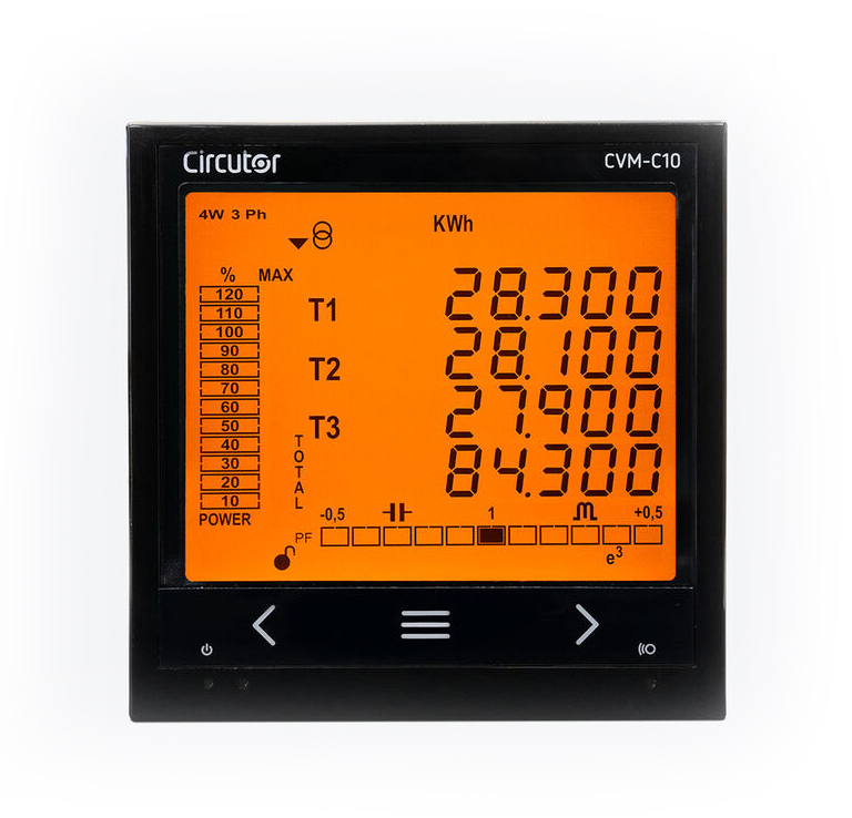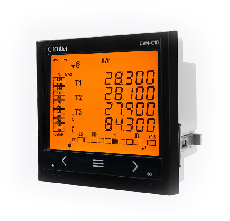 - CVM-C10 เป็นเครื่องวิเคราะห์กำลังไฟฟ้าที่ติดตั้งบนแผง (96 x 96 มม.) ซึ่งบันทึกค่าพลังงาน กะทัดรัดและใช้งานได้หลากหลายด้วยการวัดแบบ 4 ควอดแรนท์ (การบริโภคและรุ่น) เหมาะสำหรับการติดตั้งแรงดันปานกลางหรือต่ำ ในวงจรสามเฟสทั้ง 3 หรือ 4 สาย วงจรสองเฟสที่มีหรือไม่มีวงจรเป็นกลาง วงจรเฟสเดียว หรือการเชื่อมต่อ ARON
