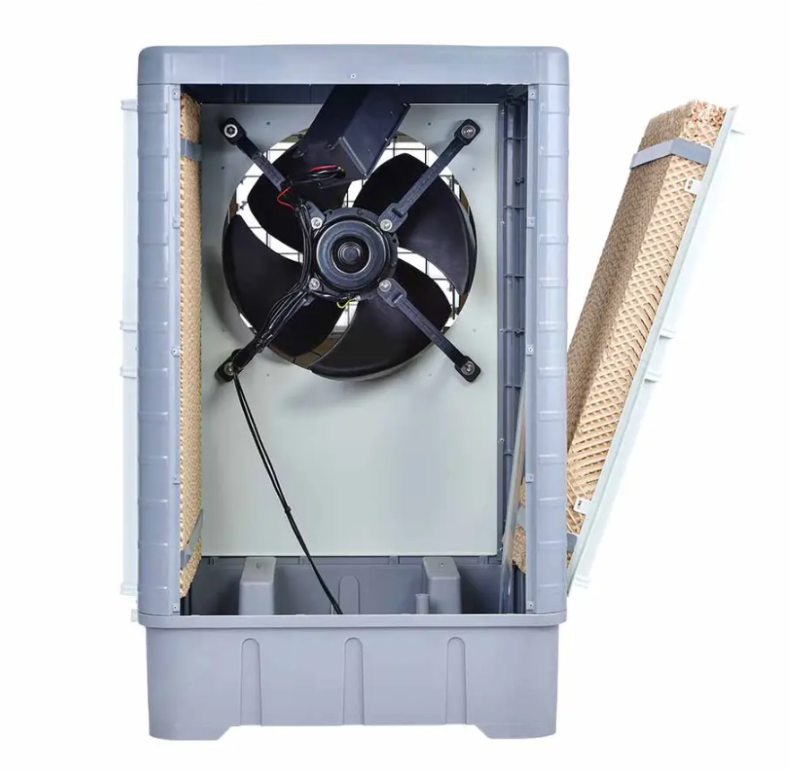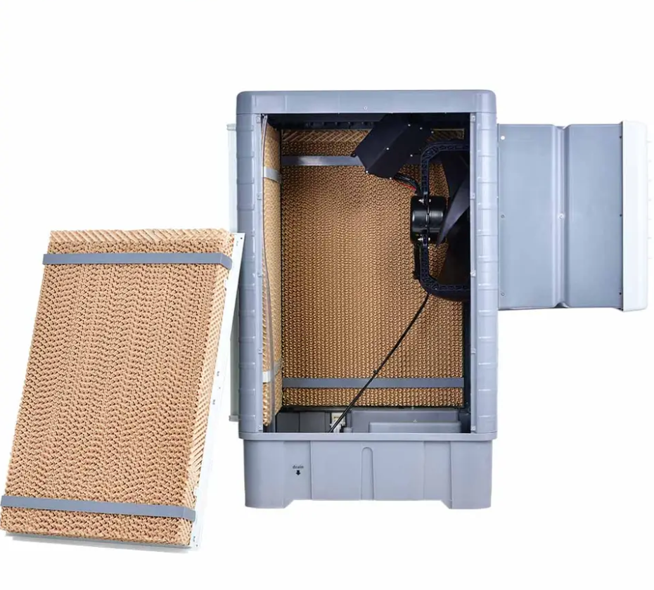 | ★ The airflow is 10000 m3/h.There are 3 cooling pads and the back cooling pad thickness is 100mm which ensures a better cooling performance. ★ Plastic case with fresh material, over 10 years lifetime with full cloaed air diffuser to prevent dust ★ 100% copper wire motor